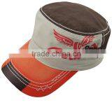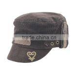 High Quality Cotton Flat Top Military Cap With Stone Washed