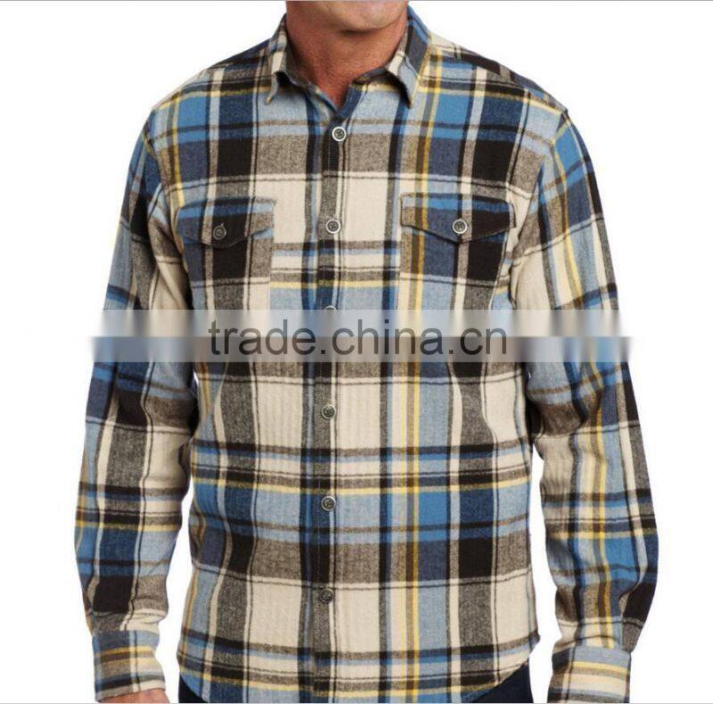 New Design Casual Long Sleeve Two Pocket 100%cotton Brushed Cheap Flannel Shirts