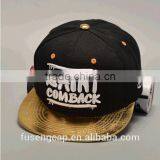 Black Leather 6 Panel Snapback Customize Cap Hat Custom