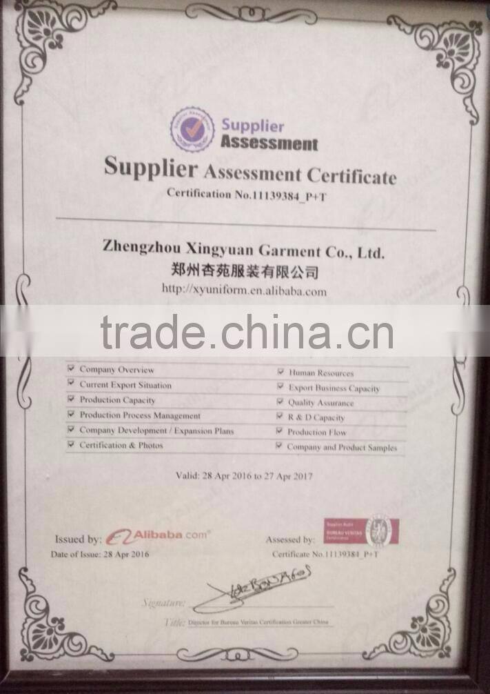 we are the factory since 1999, we have more than 15years experience in uniforms, We do OEM service to customers, we can do as per customer's design . also we are alibaba verified supplier and had trade assurance,