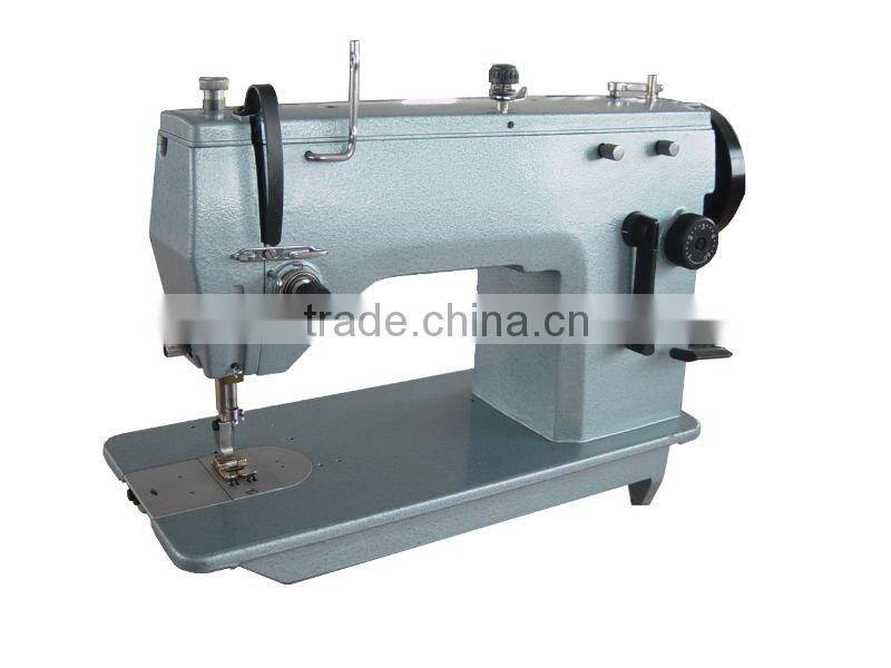 Flat-bed industrial sewing machine zigzag sewing machine 20U53 is suitable for zigzag, sewing embroidery, abbutted seaming on light and medium material,such as garments,shoes and caps, leather articles and bags etc. Adjustable backward feeding mechanism. Beautiful stitch and easy of operation.