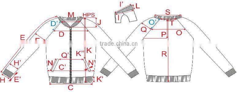 | *H' | 1/2 Bottom sleeve (extended 5 cm above rib) | 11.4 | 11.7 | 12.0 | 12.3 | 12.6 | ||||||||||||