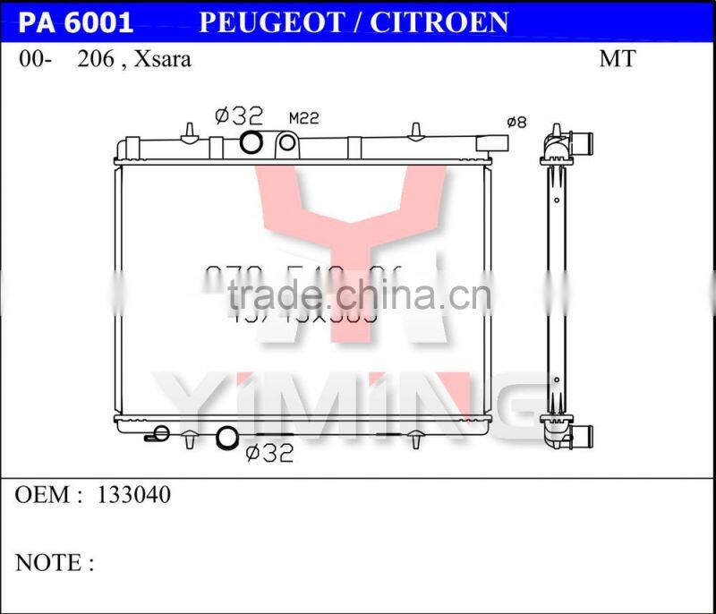 Auto Radiator for Peugeot Citroen Xsara 206 2000 MT , 133040