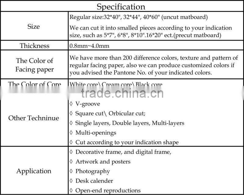 1. professional manufacture of mat board(matboard, mount board, card board, pre-cut mat board)