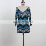 F5S11034 Latest Fashion Print Long Ladies Blouse