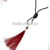 Gold Tone Black Acrylic Bead & Red ThreadTassel Pendant Necklace