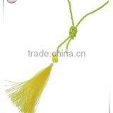 Gold Tone Green Acrylic Bead & Yellow ThreadTassel Pendant Necklace