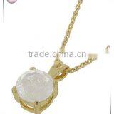 Gold Tone Ivory Cubic Zirconia Pendant Necklace