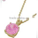 Gold Tone Lt. Pink Cubic ZirconiaPendant Necklace