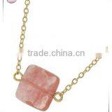 Gold Tone Cherry Quartz Semi-precious Stone Pendant Necklace