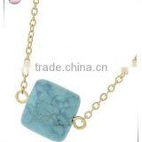 Gold Tone Turquoise Semi-precious Stone Pendant Necklace