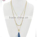 Matte Gold Tone Teal Thread Clear GlassMetal Layer Tassel Pendant Necklace