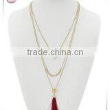 Matte Gold Tone Burgundy Thread Clear GlassMetal Layer Tassel Pendant Necklace