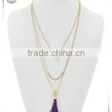 Matte Gold Tone Purple Thread Clear GlassMetal Layer Tassel Pendant Necklace
