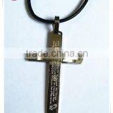 Genuine Cow Leather Stainless Steel Religious Message Cross Necklace.