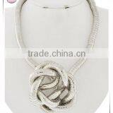 White Gold Plating Crystal Stud Triple Round Link Necklace