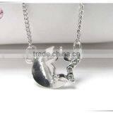 White Gold Plating Crystal Stud Moon and Star Link Necklace