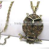 Crystal Stud Big Eye Owl Pendant Long Necklace