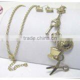 Alice in Wonderland Theme Charm Dangle Long Necklace Earring Set