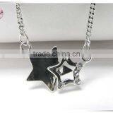 White Gold Plating Crystal Stud Dual Star Link Necklace