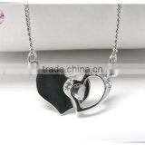 White Gold Plating Crystal Stud Dual Heart Link Necklace