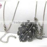 Crystal Stud Leaf and Elephant Pendant Long Necklace
