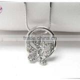 White Gold Plating Crystal Stud Butterfly Round Pendant Necklace