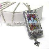 Crystal Stud Oval Purse Locket Pendant Long Necklace
