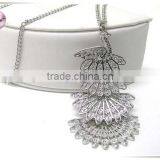 Multi Layer Crystal Stud Peacock Pendant Long Necklace