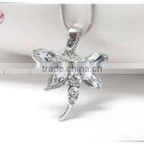 White Gold Plating Crystal Stud Dragonfly Pendant Necklace