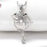 White Gold Plating Crystal Stud Dolphin Round Pendant Necklace