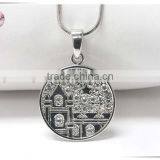 White Gold Plating Crystal Stud Star and Castle Round Pendant Necklace