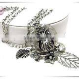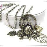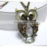 Crystal Stud Owl and Leaves Charm Dangle Long Necklace Set