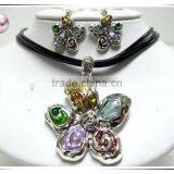 Multi Color Enameled Metal Flower Pendant and Cord Necklace Set
