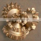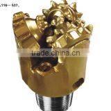 The 427 tci bits are used to drill low compressive strength,very soft formations .TCI bits maximize the use of bothconical and chisel tungsten carbide inserts of large diameters and high projection.This cutting sstructure design,combined with maximum cone offset,results in high bit penetration rates .The deep intermesh of cutter rows prevents bit bailing in sticky formations.