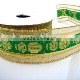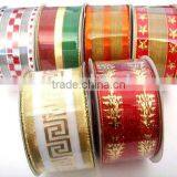 kinds of christmas products with high quality, fashion designs, fine texture, good shape, bright color and 4 level fastnessOur Christmas ribbon is based on the nylon organza ribbon. We use gold foil printing and then make it wire pressed on both sides. Christmas ribbons can be used for decorations on this holidays. The color size and style can be changed by clients demand. Price is according to the width and materials.
