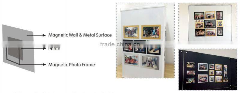 Magnetic photo frame is a simple and stylish way to frame your photos on metallic wαll, to create a photo wall in your home. And you can put the magnetic photo frame on flat or curved metal surfaces like whiteboard, fridge door, magnetic wall and metal cabinet.