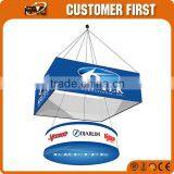 This kind trade show booth hanging banner is easy and outstanding trade show display hanging banner. This ceiling haning banner can be used for trade show, exhibition display and advertising display hanging banner. This hanging banner is easy to set up, and safe exhibition booth hanging banner by metal and hanging fabric banner. You can use this trade show ceiling hanging banner to display your product and brand outstanding for your trade show display.
