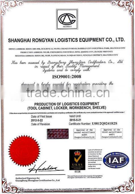 Shanghai Rongyan Logistics Equipment Co., Ltd. is a specialized enterprise engaged in the workshop warehouse logistics equipments. We devote to logistics, and provide the whole services for the warehouse system such as plan, design, manufacture, installation and maintenance. Our products include toolboxes, tool cars, worktables, storage cabinets and shelves used for industry and all materiel reorganization. Our indispensable manufacture equipment can enhance efficiency, save space and create profits. We have strong productivity, and a technical exquisite design and manufacture group. Epecially, we have a perfect after-sales safeguard system, and provide considerate service by experienced technical personnels for the customers. Our company has passed the evaluation of ISO9001 international quality system. We aim at satisfying customers' needs, providing more perfect designs, the best performance, price ratio and the best service for all of our customers.