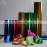 5.Application:It's a material of PVC(PET) be metallized,mainly uses in festal situation's gift package,upholsterment and etc,such as Christmas decoration,mask.Also available in food packing,like moon cake packing etc.PET Metallized sheet also available in drawbench,garland,bead piece,headgear and other clothes ornaments.