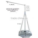The flying Banner is ideal for both indoor and outdoor events. Watch the banners come alive by using one of our rotating bases, no matter what the wind; the Banner will clearly display your company or product name.