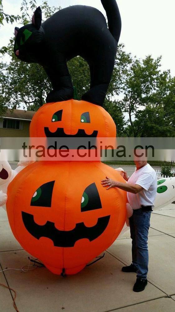 Halloween Airblown Inflatable Black Cat With Pumpkin and Ghosts
