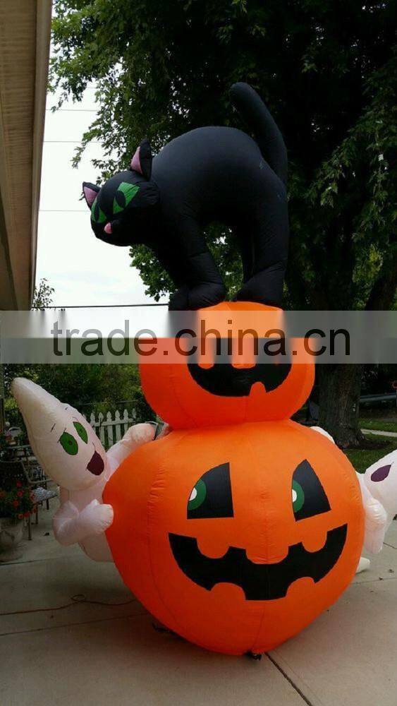 Home > Products > Halloween Inflatables > Halloween Airblown Inflatable Black Cat With Pumpkin and Ghosts