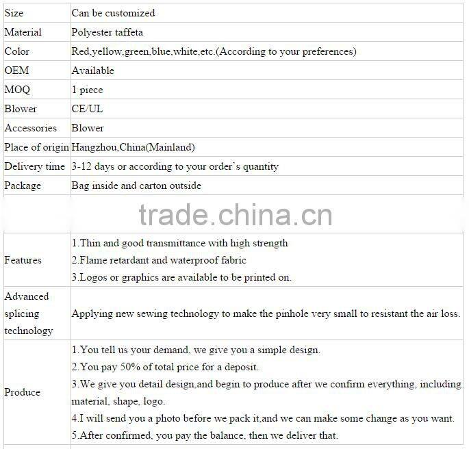 We are supplier and also own manufacturing shop and professional worker and QC .So can provide both the best price and excellent quality.We offer a wide array of creative and unique inflatable product(inflatable arch,inflatable tent,inflatable movie screen,Christmas inflatables,inflatable flowers,inflatable stars,inflatable cone,inflatable decorations,inflatable cartoon and so on) for special events.Lightweight, affordable and easy to install, available in variety of shapes drive traffic to your product, event or place of business. Brand your event with customized pieces that include your logo or message.