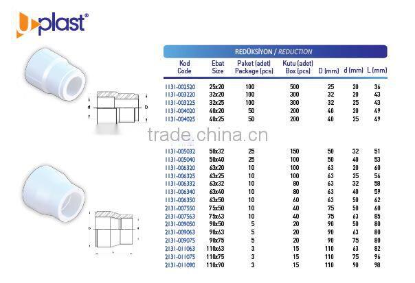 Production of UPLAST includes; PPR-C Installation Pipe and Fittings, PVC waste water pipe fittings, PVC soft watering hoses, spiral suction & discharge hoses and jacuzzi hoses, roof & rain gutters and fittings, PE underground watering pipe. We have been marketing our products in the domestic market and Middle East, Turkic Republics, various countries such as Balkan States and Russia via distributors and powerful dealer networks.