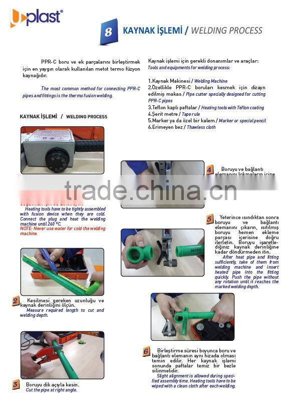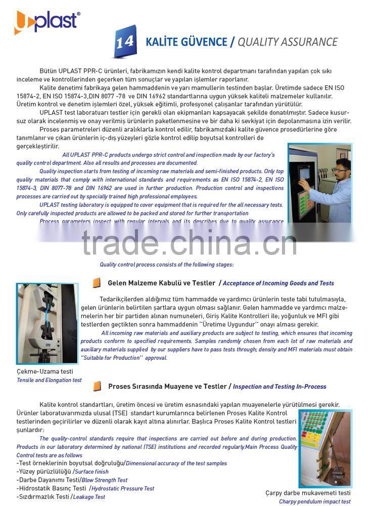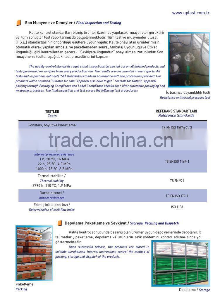 Production of UPLAST includes; PPR-C Installation Pipe and Fittings, PVC waste water pipe fittings, PVC soft watering hoses, spiral suction & discharge hoses and jacuzzi hoses, roof & rain gutters and fittings, PE underground watering pipe. We have been marketing our products in the domestic market and Middle East, Turkic Republics, various countries such as Balkan States and Russia via distributors and powerful dealer networks.