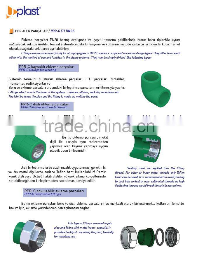 UPLAST PPR-C piping system is designed for cold and hot water installation as well as central heating systems