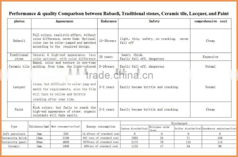 A:Chongqing Ba Bao Li Technology Co., Ltd. was established in 2010. It is a professional private enterprise which sets research and development, production, marketing and construction in one. Our company cooperated with China Academy of Building Standard Design, Chongqing University, Southwest University and other universities. Our soft tile, soft-paste porcelain stone have been the recommended products for construction projects by the Ministry of Construction.