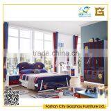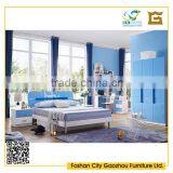 Cheap Modern Blue Lacqure Bedroom Furniture Sets for Kids With Words on Headboard Design