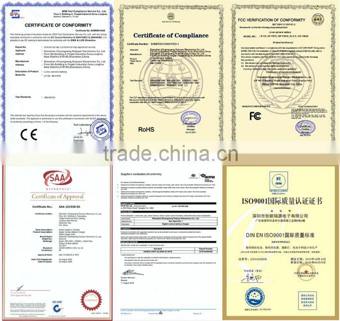 Our ShenZhen Chuangneng Ruiyuan Electronics Co.,Ltd is a professional manufacturing company specialize in camera& camcorder battery,charger,flashlight,microphone and accessories. Supplier factory with 7-year factory experience of trading companies and distributors in China,which hold MSDS report, all our products passed CE&RoHS&PSE.